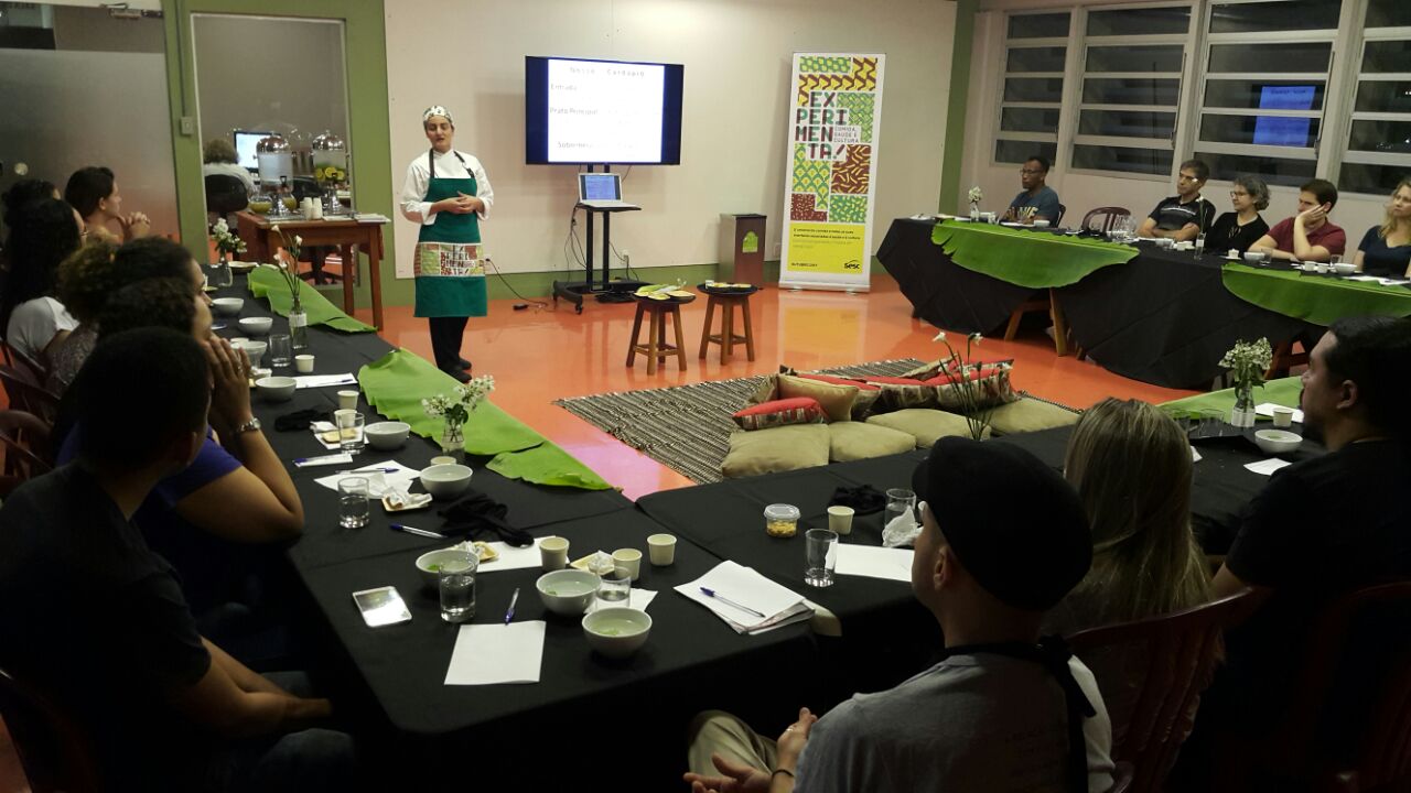 ‘Organolepsia’ – cheirar, ver, tocar, provar e ouvir o alimento: (re)descobrindo nossa relação com a comida. A oficina convida os presentes a explorar os cinco sentidos durante o ato de se alimentar, estimulando assim a (re)descoberta de nossa relação com o alimento.